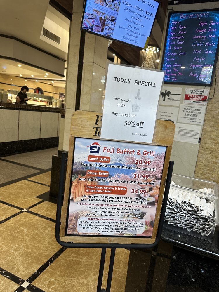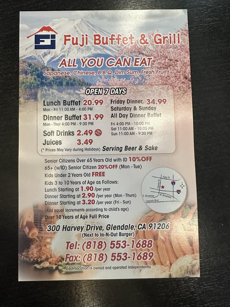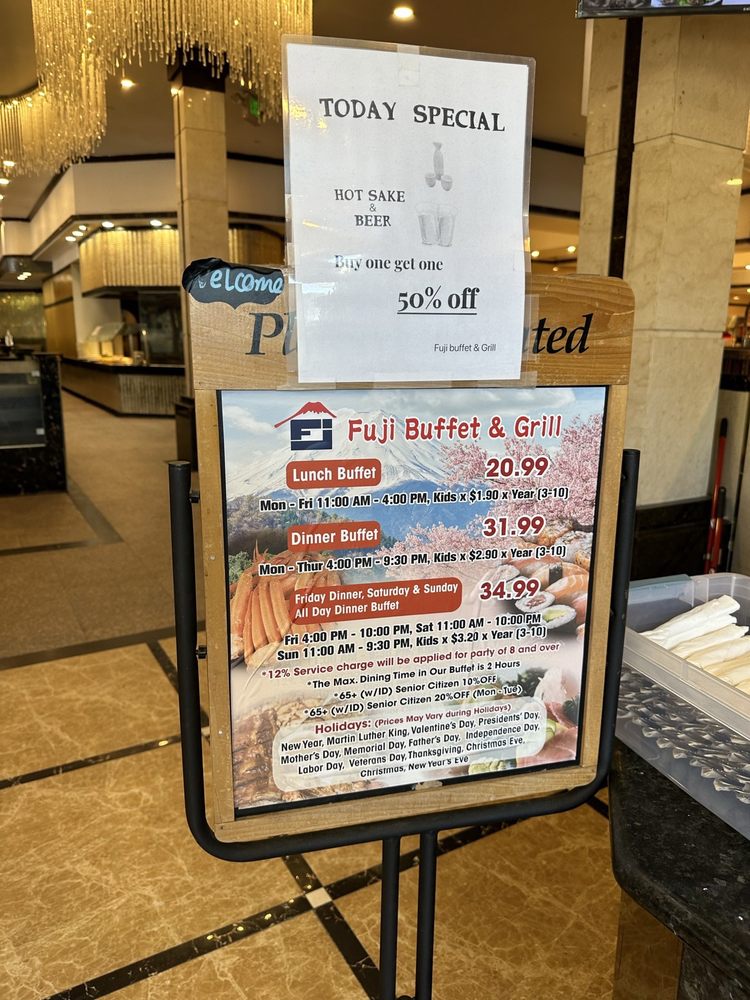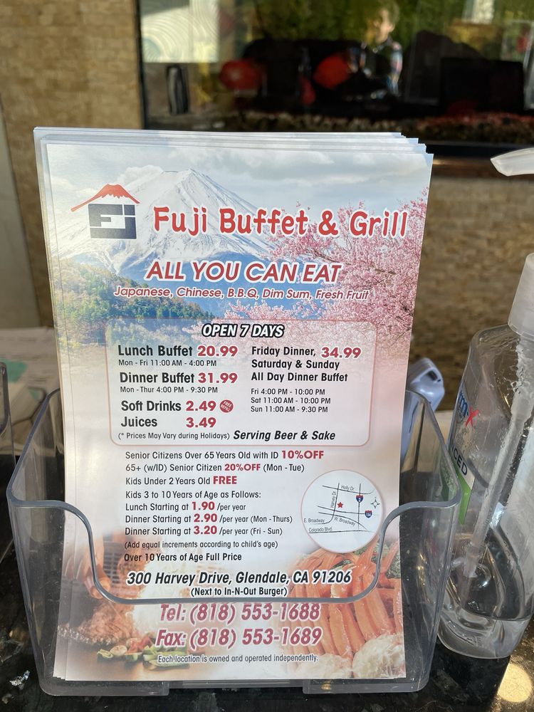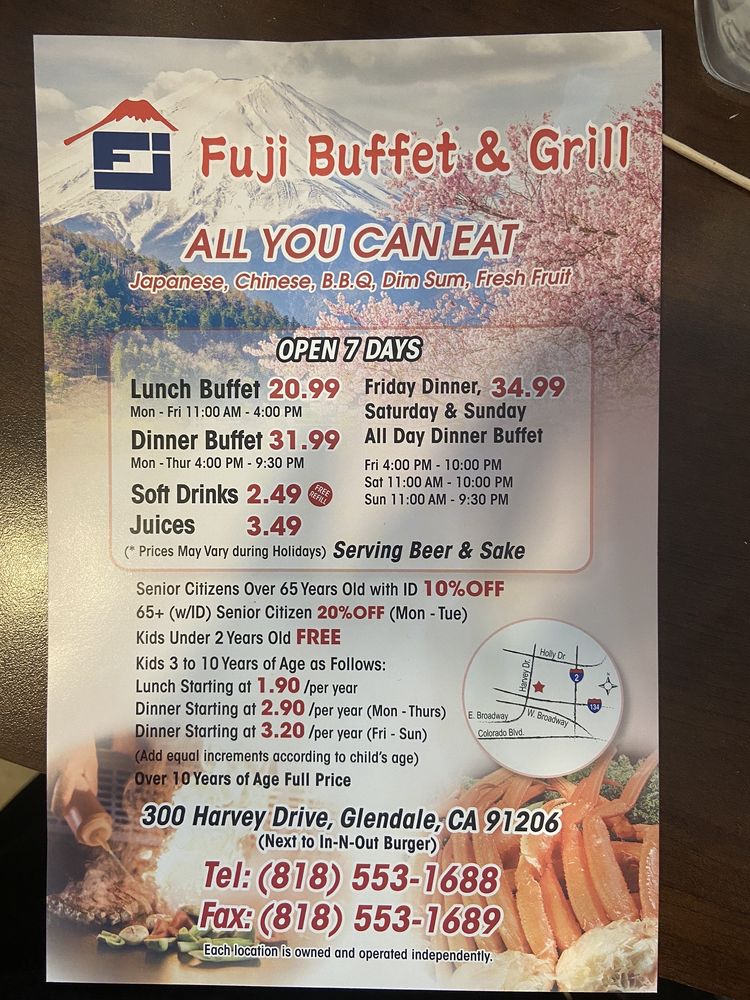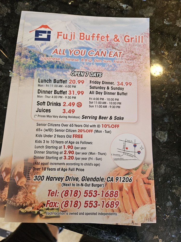 FuJi Buffet & Grill is a buffet restaurant in Glendale offering Chinese and Japanese cuisine. With vegan options, wheelchair accessibility, and a range of amenities like takeout and delivery, it caters to a diverse clientele. Customers praise the large crab legs, fresh seafood, and variety of dishes available. The ambiance is clean, parking is convenient, and the service is top-notch. The restaurant is popular for its AYCE crab legs, sushi, and Asian food selections. Prices are reasonable, making it a great spot for filling, satisfying meals. Overall, FuJi Buffet & Grill stands out for its quality food, attentive service, and spacious layout, making it ideal for groups and special occasions.